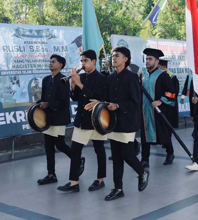 Universitas Islam Kebangsaan Indonesia (UNIKI), yakni M. Rizky Agisra, Muhammad Aiman, dan Khalid Baroena, tampil memukau dalam acara Wisuda Angkatan IV dengan memainkan dua rapai dan satu seurune kale. Penampilan mereka sukses menghidupkan suasana haru dan khidmat dalam prosesi wisuda yang berlangsung megah di Gedung UNIKI. Dengan iringan musik tradisional Aceh, ketiganya menunjukkan kemampuan serta dedikasi tinggi terhadap pelestarian budaya daerah. Dentuman ritmis rapai berpadu dengan alunan seurune kale menghadirkan nuansa khas Aceh yang memperkaya momen sakral tersebut, sekaligus menjadi simbol kebanggaan kampus yang menjunjung tinggi nilai-nilai seni dan budaya.